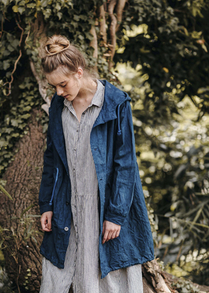 厚手のリネンコットンのモッズやロングコート、リネンのシャツとワンピース、